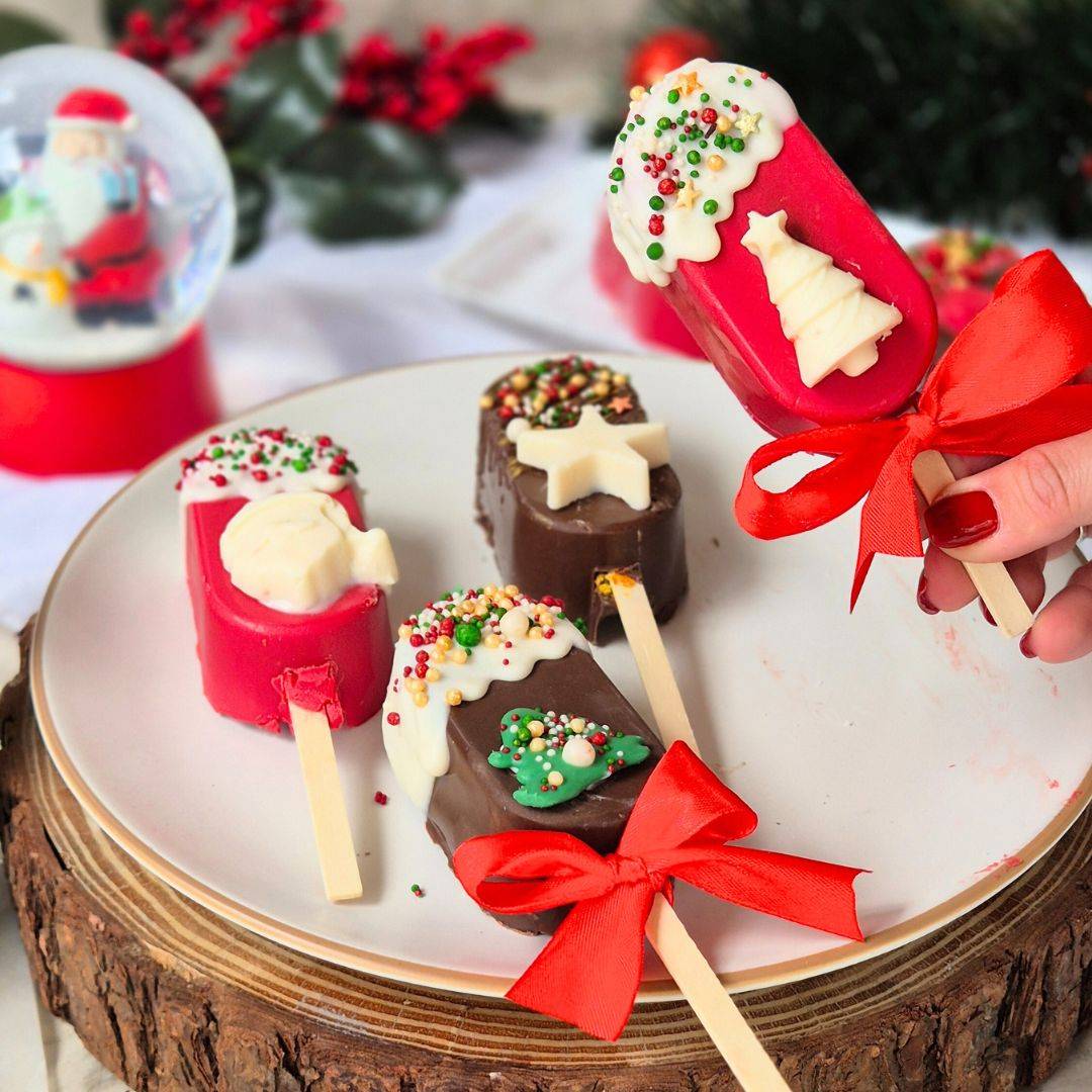 Casquinha de cobertura de chocolate com recheio de bolo de cenoura e brigadeiro.