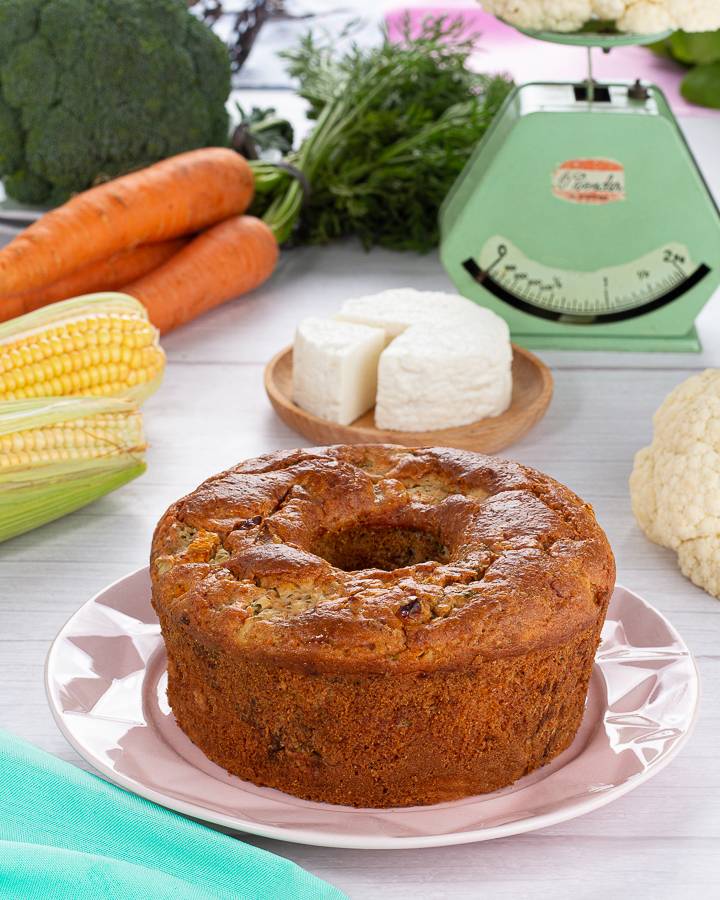 Massa integral, recheio de legumes variados, brocolis, couve flor, cenoura, ervilha, milho, ricota e oregano.